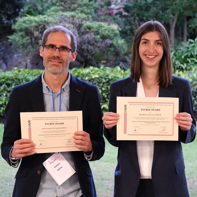 El pasado lunes 27 de octubre, el profesor Rodrigo Martin Sáiz, profesor del ambito de estruturas del Departament de Tecnologia de l'Arquitectura, y también antiguo alumno de la Escola Tècnica Superior d'Arquitectura del Vallès (ETSAV-UPC), fue premiado con el IASS Tsuboi Award for the most meritorious paper published in the Journal of the IASS during 2024.